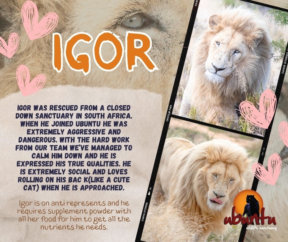 At Ubuntu Wildlife Sanctuary, our Adoption Programme gives you the chance to make a real and lasting impact on the lives of rescued animals. Each adoption helps provide expert veterinary care, nutritious meals, spacious natural habitats, and daily enrichment that supports healing, comfort, and freedom. By adopting one of our remarkable residents, you become part of their story — supporting their journey while receiving unique benefits that keep you connected to the animal you’re helping protect.